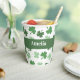 Green Shamrock patterns St. Patrick's Day design. Modern custom graphic design. Design features a four leaf clover and a three leaf clover in various shades of green with a clean mint background