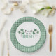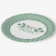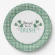 A 9-inch Paper Plate, with green Shamrock leaves and 'Proud to be Irish' in Celtic scripts, on a White background that you can change if you wish. Part of the Posh & Painterly 'Shamrocks' collection, this design can be adjusted to fit any Paper Plate.