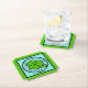 Serve your drinks on these practical paper coasters with a great Irish shamrock. The background is light teal.