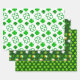 Three different shamrock inspired wrapping paper for. St. Patrick’s Day.