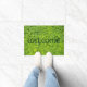 Decorative welcome doormat that features a floral photo image of a bright green, tiny shamrocks and the word "Welcome" in a Celtic font style. Use indoors or in covered entryway areas. Select your mat size.