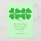 Painting of two green shamrocks, four leaf clovers, trimmed in gold dots, is printed on Wedding Invitation Postcards. Easily customise the text on the template forms.