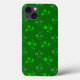 A lucky shamrock pattern in Irish greens with three-leaved clovers on a dark green background. Customise it to add your name or custom message, change background colours and more.