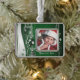 Green silver grey Christmas balls, stars and snowflakes custom holiday photo ornament design featuring hanging silver grey, red Christmas ornaments, stars and snowflakes and your photo.