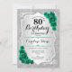 Green Silver Elegant Floral 80th Birthday Invitation