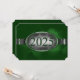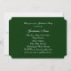 Floral designs surrounding button on top of a silver ribbon that has floral designs. Green cloudy background. The back of the card has a green background with white lettering for the graduation party invitations.