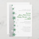 Green, silver grey white snowflake wedding couples hower invitation, featuring a waved band in silver grey with stars and elegant emerald green snowflakes. Text in green. A stylish design perfect for your winter, December or Christmas wedding. Modern and contemporary yet suitable for a traditional wedding. It is a completely customisable template, part of a wedding set.