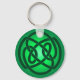 This circular motif on a glowing green background uses the Celtic Knotwork technique, where a single continuous loop of ribbon is interlaced to form an intricate pattern.