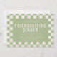 Invite your friends over for Thanksgiving dinner with this simple, modern and fun chequerboard themed invitation in a soft hues of sage green and ivory.