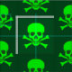 Green skull and crossbones pattern fabric. Choice of background colour.