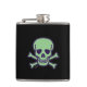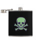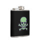 Green Skull black wrapped flasks are a Halloween holiday special for thirsty horror fans, Goths, rockers, bikers, murder mystery fans, pirate reenactors, cosplayers, roleplay gamers and just drinkers who like skulls. Green Skull is Steamy Raimon original art.