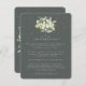 A dark grey green flat wedding enclosure card for all your wedding information: online response/rsvp, accommodation, travel information, registry details, wedding website and more. Featuring an elegant bouquet/posy of hand painted snowberries and eucalyptus on the front and a wreath on the back of the card. All text is fully editable and the scattered dots on the front and back can be deleted before ordering if you would prefer. This card is available with alternative botanical designs, in a landscape format, and in different colours. Please view the Collection in my store to see all options and coordinating items.