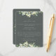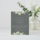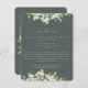 A dark grey green flat enclosure card for wedding receptions that are held at a different venue than the wedding ceremony. The card features an edging of hand painted snowberries and eucalyptus on the front and a wreath on the back of the card. All text is fully editable and the scattered dots on the front and back can be deleted before ordering if you would prefer. This card is available with alternative botanical designs, in a landscape format, and in different colours. Please view the Collection in my store to see all options and coordinating items.