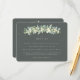 An elegant dark grey green flat wedding enclosure card featuring a garland of hand painted snowberries and eucalyptus on the front and a wreath on the back of the card. All text is fully editable and the scattered dots on the front and back can be deleted before ordering if you would prefer. This card is available with alternative botanical designs, in a portrait format, and in different colours. Please view the Collection in my store to see all options and coordinating items.