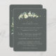 A dark grey green flat wedding enclosure card for all your wedding information: online response/rsvp, accommodation, travel information, registry details, wedding website and more. Featuring an elegant stem of hand painted snowberries and eucalyptus on the front and a wreath on the back of the card. All text is fully editable and the scattered dots on the front and back can be deleted before ordering if you would prefer. This card is available with alternative botanical designs, in a landscape format, and in different colours. Please view the Collection in my store to see all options and coordinating items.