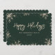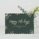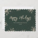 Green Happy Holidays card featuring sparkling snowflakes. Easily personalise this minimalist, yet elegant holiday card with your text.