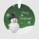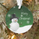 Add a whimsical touch to your Christmas tree with a Green Snowman Winter Scene Ornament. Ornament design features a happy snowman in a snowy wintry scene against a green background adorned with matching colour snowflakes. Additional gift and holiday items available with this design as well.