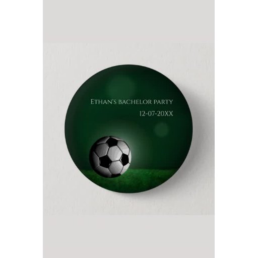 This design features a lush green soccer field, illuminated by warm sunlight, with a finely detailed soccer ball as the focal point. Perfect for any soccer enthusiast, this design captures the excitement of the game - soccer, football, or futsal. Celebrate the groom-to-be with a day filled with camaraderie, fun, and the beautiful game—fútbol. Ideal for soccer lovers and players alike, this design promises a memorable kick-off to the festivities. Part of a sports-themed collection, it’s perfect for fans of soccer, football. This can also be customised for soccer birthday party / football birthday party or any other sports themed celebration.