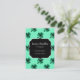 Personalise and customise elegant faux sparkly business card with your initial and name. Beautiful Saint Patrick's day turquoise business card: clover with smaragd green sparkles glitters. Photo of sparkles not actual glitter!