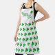 The bottom of this beautiful apron is covered with a bright and sparkly St Patrick shamrocks pattern on a white background.