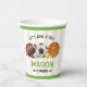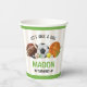This is a sports themed birthday party paper cups. Let's have a ball! This design includes football, basketball, soccer, hockey, golf, baseball, and tennis. Green and brown. Perfect for a kids/children's birthday theme.