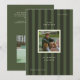 Graduation photo announcement card with a sporty, green striped background, ideal for athletes.
