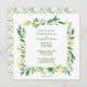 Simple and classy, these wedding invitations are the perfect way to invite all of your friends and family to your big spring or summer big day celebration. Features greenery around a frame on the front that surrounds green text and a pattern of the dill, mint, rosemary, thyme, parsley, olive branch, and other leaves. The back is covered by a pattern of the medicinal herbs.