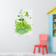 Decorative vector design of green plants with rose buds, next to a little stream of water. This green and white design can bring a fresh look to your walls decor. Customisable product.