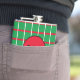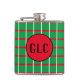 This design has a green background with red and white lines that form a pattern of squares. In the centre of the flask there's red circle, with an area for your initials.