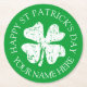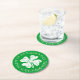 Green St Patrick's Day party coasters with custom text. Great for home, drinking pub, cafe, beer garden, bar, office, wedding etc. St Paddys day party supplies with vintage shamrock logo. Lucky Irish pride 4 leaf clover design with kelly green background colour.