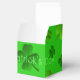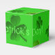 Four-leaf clover favour boxes. Hand out bright green favours on St. Patrick’s Day and put them inside cute paper boxes. Dark green clover leaves cover boxes that come in many styles. “Happy St. Patrick’s Day” text wraps around the outside of the cube shape and is easy to change for a birthday or other gathering. The text may not show, or print in the correct place on other styles - so delete it. Perfect for a kid’s or adult’s celebration of the Irish holiday.
