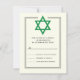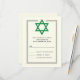 Green Star of David Bar Mitzvah elegant RSVP reply card, featuring the Star of David in green and double black border on ivory background. Stylish and classic at the same time this formal, neutral invitation is perfect for a modern or traditional Bar Mitzvah. It can also be used for a Bat Mitzvah.