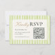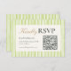 Streamline guest responses with these green stripe RSVP postcards, front displaying elegant "Kindly RSVP by [Date], Scan QR on our website" alongside wedding site URL. Guests can scan the code or visit the printed wedding website, making this card perfect for couples using digital RSVPs. The pastel green stripes make it great for a modern, garden or summer wedding.