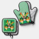 Green Striped Irish Coquette Oven Mitt & Pot Holder Set