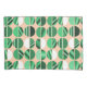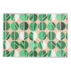 This pillowcase has a mid-century modern design of oval halves, some solid and some striped, in shades of green on a field of pale orange.