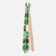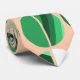 This necktie mid-century modern design has oval halves, some solid and some striped, in green colours on a field of pale orange.