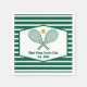 These classy modern country club napkins features tennis rackets and a ball above your tennis team name and established date. Green and white striped decor for your tennis players and country club members.