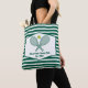 These classy modern country club tote bag features tennis rackets and a ball above your tennis team name and established date. Green and white striped gifts for your tennis players and country club members.