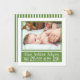 Share your little one’s arrival in style with this personalised Birth Stats Photo Announcement. Featuring your newborn’s picture and details in a playful sketched font, with colourful and cheerful green striped accents. The sweetest way to introduce your baby to friends and family.