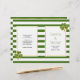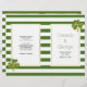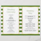 Irish clover and green, white stripes Saint Patrick's Day folded wedding ceremony and party program. The elements of this wedding program template are the green and white striped pattern and the shamrock on the corners of a white frame with your text. Choose only the value paper for this program as it folds well and fold it in half manually.