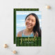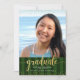 Be proud, rejoice and announce to the world that your favourite grad has reached their milestone with this stunning, simple, modern, personalised announcement invite. Sparkly, elegant, faux gold glitter handwritten calligraphy script, white sans serif typography and a photo of your choice overlay a hunter green striped background. Personalise the custom text with your graduate’s name, school name, class year, and graduation date. On the back, add your personal note, next school they’re attending, party information, etc. Matching and coordinating thank you cards, cap toppers, fans, napkins, plates, banners and other graduation goodies are also available in this trendy and stylish collection. Guaranteed to add stylish fun to their special occasion!