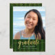 Green stripes graduation photo gold glitter script announcement
