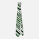 Neck tie featuring diagonal green and white stripes pattern.