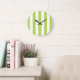 Green Stripes, White Stripes, Striped Pattern Large Clock