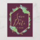 Green Succulents Gold Frame Marsala Save the Date Announcement Postcard