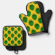 Green Summer Strawberries on Yellow Oven Mitt & Pot Holder Set