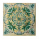 Pretty green and gold leaf look Italian or Portuguese decorative tile. Inexpensive kitchen update. Part of a matching set of kitchen decor.