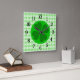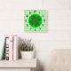 Green Tartan Pattern and Clover Lucky Square Wall Clock
