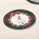 Green Tartan Plaid Christmas Bear Birthday Party Round Paper Coaster