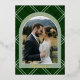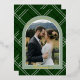 Celebrate your very first holiday season together with this elegant “Merry and Married” First Christmas Photo Card, designed with a timeless green tartan plaid pattern and luxurious gold foil lettering. This sophisticated holiday card captures the charm of classic winter style while highlighting your favorite wedding or couple photo in a beautiful arched frame.